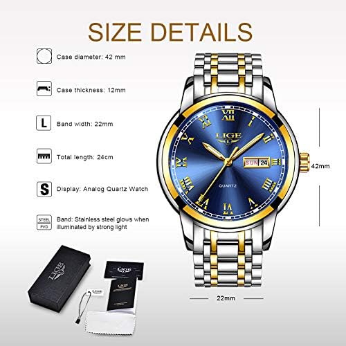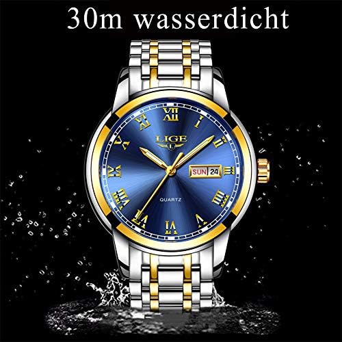 LIGE Mens Watches Waterproof Stainless Steel Simple Design Analogue Quartz Watch Men Business Casual Date Blue Wrist Watch for Men
