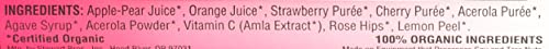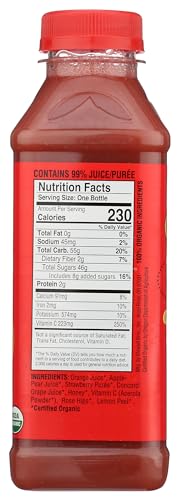 No synthetic vitamins No unknown ingredients One 15.2 fl oz bottle of strawberry super c juice puree and juice blend USDA organic