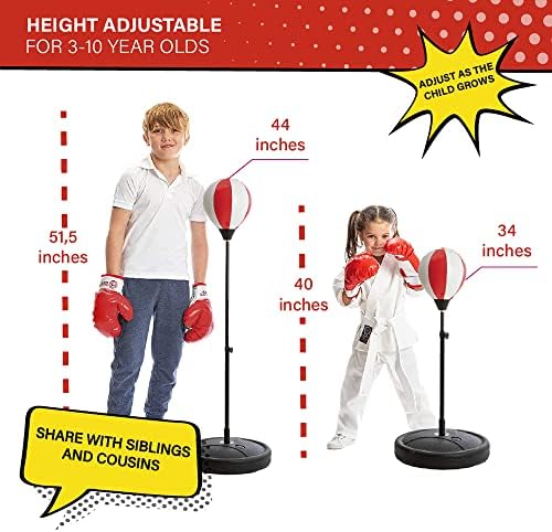 Whoobli Punching Bag for Kids Incl Boxing Gloves | 3-10 Years Old Adjustable Kids Punching Bag with Stand | Boxing Bag Set Toy for Boys & Girls (Red White); New 2024…