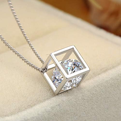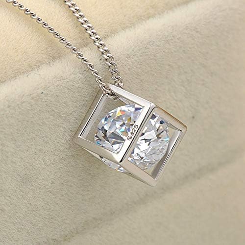 3MNSCD Sterling Silver Necklace Cube Pendant 2 Colors Zircon 18inches Box Chain Pendant Platinum Plated