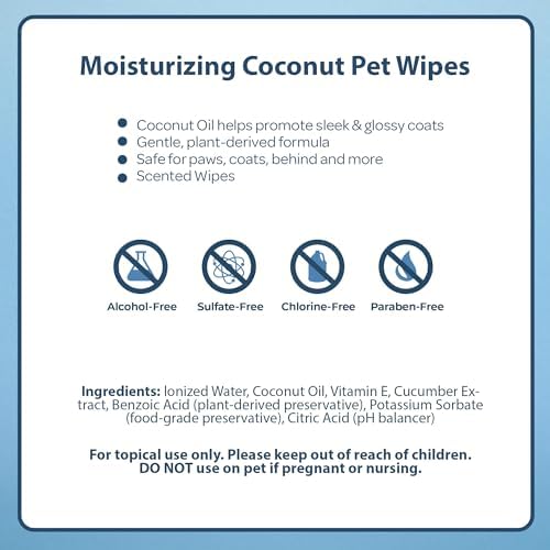 Best Pet Supplies Coconut-Scented Moisturizing Pet Wipes for Dogs & Cats – Extra Soft & Strong Grooming Wipes with Gentle Plant-Derived Formula, Model Number: WW-CO-100 Count (Pack of 1)