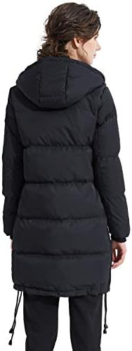 Shell/Lining Fabric: 100% polyester; Body/Sleeve Filler: 90% duck down, 10% feathers. Warm stand collar and big hood provide added protection, and printed inside snap helps seal in warm. Mid-length design will make down jacket more comfortable to wear. The winter jacket is designed to be loose for easy moving in wintry days, and also a good warm-keeping down jacket. Two-way front zipper closure and knit ribbed cuffs, adjustable string on the bottom from the coat for adjusting warmth and comfort easily. This women winter coat always play an essential in cold weather, collecting leggings, scarf and high heels, which make you look charming and beautiful but keep out the cold in winter. The warm down coat will be folded and compacted inside of the package when delivery, so you may feel it thin and flat, if so, lightly pat the jacket with your hands and then have it hang. Our model height is 5'9",chest 31.5", waist 22.8", hip 35", and wearing a extra-small.