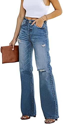 Women bootcut denim jeans, high rise, ripped and distressed denim pants, with functional pockets, easy zipper fly and belt loops, vintage fit. Flare jeans for women constructed from premium denim, enhance the body’s natural silhouette, creating more streamlined look; distressed look gives the illusion of jeans a retro chic flavor. Bell bottom jeans highlight the leg line, suitable for any figure, provide full comfort; high waist visually adds growth, show your long legs well. Great for casual daily life, outdoors, party, vacation, shopping, working and etc. High waist ripped jeans can pair with jacket, caidigan, sweater, t-shirts, crop tops, sweatshirts in different seasons. Distressed flare denim pants is a classic look, suit all body types at any age. Bell bottom jeans 32 inches inseam. Size Small fits Size 4 / Size 6, Medium fits Size 8 / Size 10, Large fits Size 12 / Size 14, X-Large fits Size 16 / Size 18, XX-Large fits Size 20 / Size 22. Machine washable in cold water, do not bleach. #213,443 in Clothing, Shoes & Jewelry ( ) #1,209 in