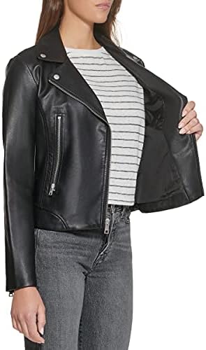 FUNCTIONALITY: Two lower zipper pockets for viable storage and safe keeping; The outer shell is water resistant allowing for easy care STYLISH FEATURES: Asymmetrical center front zipper with snap-down lapels, functional zipper detailing on cuffs VERSATILITY: This smooth touch faux leather jacket a staple in every woman’s closet; It is perfect to transition between seasons or to use as a layering piece #360,079 in Clothing, Shoes & Jewelry ( ) #168 in