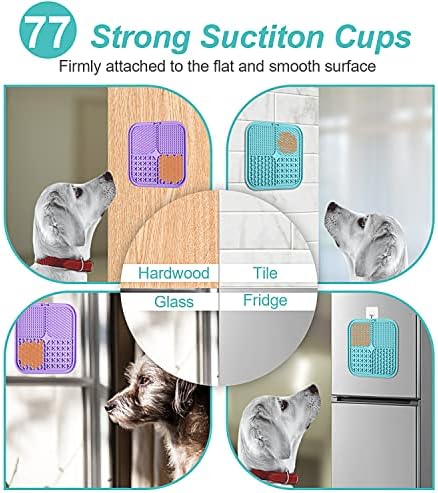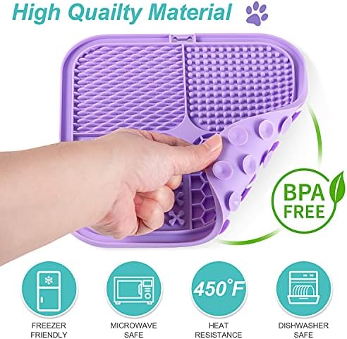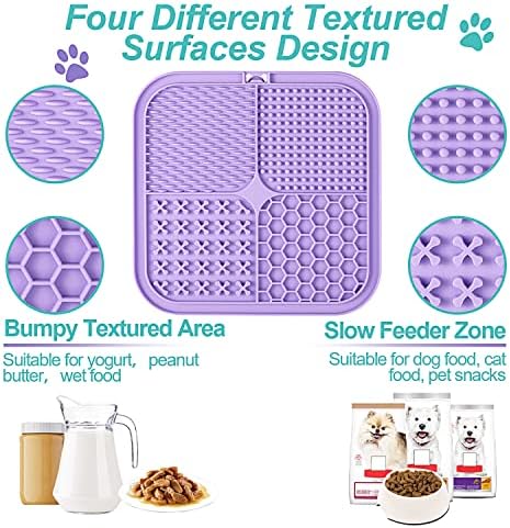 ❤️??【77 Super Suctions】: The back of this licking mat is equipped with 77 high-strength suction cups, which can be well fixed on various walls or glass, refrigerators. It is a good distraction toy for pet bathing grooming and dog nail trimming. ❤️??【Slow Feeder Mat for Dogs & Cats】: Four different textured surfaces design is prefect for spreadable treats, such as cream cheese, yoghurt, peanut butter and so on. It is a peanut butter slow feeder mat for dogs to extend the feeding time and aid digestion. This lick mat is an ideal size for cats, puppies, small meduim and large dogs. ❤️??【Reduces anxiety, boredom and destructive behavior】: The lick pads help calm pets. It is a boredom buster for dog to suppress destructive behavio and relieves anxiety at home alone. This dog treat pad is great for stressful times such vet visits, bath time, nail clipping, injury recovery as well as thunderstorms and fireworks. ❤️??【Food grade silicone】 Premium food grade silicone material, very durable and tough, safe for your pets. ❤️??【Dish-Washer & Freezer safe 】: It is dish-washer safe, and can be hand-washed in warm soapy water; and it is also freezer safe. #751 in Pet Supplies ( ) #6 in