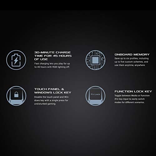 Compact 65% layout masterfully incorporates arrow and navigation keys, in a 60% keyboard frame ROG NX Red Mechanical Switch with fast actuation and ROG-tuned force curves for great keystroke feel and linear feedback Interactive touch panel makes it easy to adjust and customize controls Dual-mode connectivity via wired USB and 1 ms at 2.4 GHz RF, and up to 450 hours of battery life* offer stable, long-lasting performance (*with RGB lighting off) Durable and long-lasting ROG PBT doubleshot keycaps Innovative keyboard cover case provides on-the-go protection Wireless Aura Sync with per-key RGB lighting