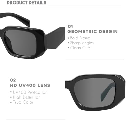 ?[AVANT-GARDE DESIGN]Our newest rectangle model is also our sleekest,these retro sunglasses feature thick and reinforced temples for those who choose to express their strength, confidence, and uniqueness through a bold and distinctive personal style. ?[UV400 PROTECTION LENS] our lens can block 100% of UVA &UVB rays and offer superior anti-glare protection,protect your eyes against long term UV damage and give you crisp vision. ?[HIGH QUALITY MATERIALS]These vintage rectangular sunglasses are made of premium plastic and reinforced metal hinges for a longtime comfortable wear.These distinctive sunglasses know how to turn heads while fitting comfortably and confidently on yours. ✨[PERFECT FOR ANY OCCASION]No matter where you go,at the mall, in the car, on the run or by the pool, these avant-garde sunglasses will pull together your look and make people think to themselves, “Wow!!” ❤️Mosanana's Motto - At Mosanana,our motto is that no need to pay a fortune to get a perfect pair of sunglasses.We are glad to have achieved balance between Quality, Fashion and Price.