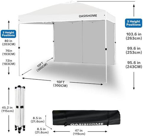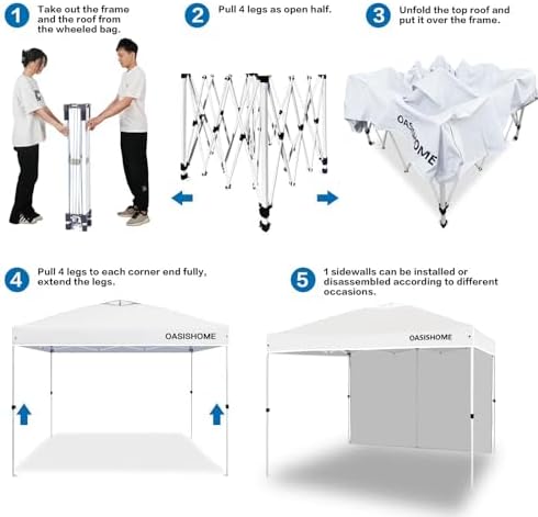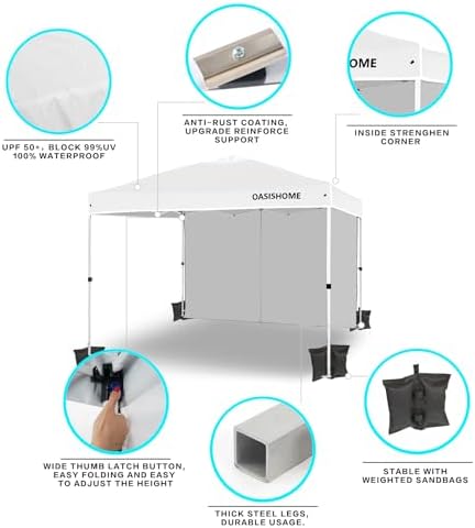 OASISHOME Pop-up Portable Outdoor Canopy Tent 10'x10' Instant Gazebo, with 1 Sidewall, Carry Bag, Stakes, Ropes, for Outdoor/Beach/Patio/Wedding Parties and Commercial Events