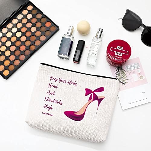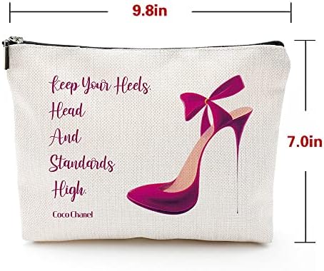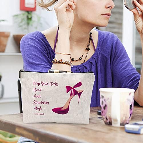 Coco Chanel Quotes Makeup Bag,Fashion Gift for Gilrs, Keep Your Heels Head Standards High Cosmetic Bag Waterproof Linen Travel Accessories for Women, Toiletry Bag Pencil Case for Daughter