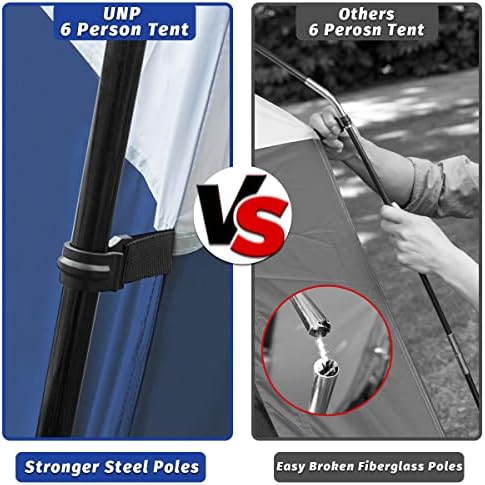 UNP Tents 6 Person Waterproof Windproof Easy Setup,Double Layer Family Camping Tent with 1 Mesh Door & 5 Large Mesh Windows -10'X9'X78in(H)