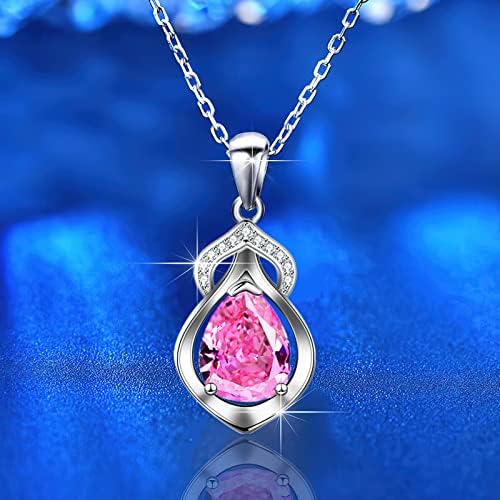 Necklaces for Women Water Drops Necklace S925 Platinum-plated with Pt950 Hypoallergenic Moissanite Pendant Necklace for Women Girl Gifts Present Valentines Birthday Anniversary Mothers Day-pink