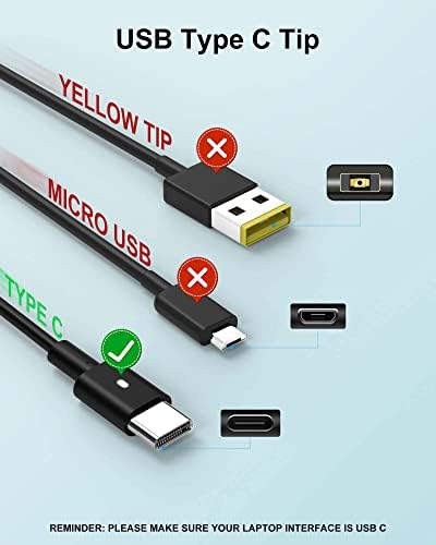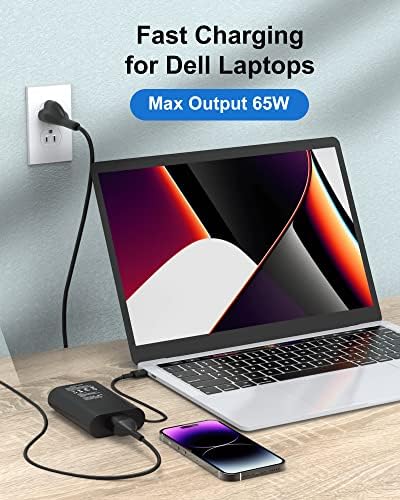 USB C LATITUDE CHARGER POWER SPECS: Output 5V-3A/ 9V-3A/ 12V-3A/ 15V-3A/ 18V-3A/ 20V-3.25A, Input: 100-240V 50-60Hz, Connector Type: USB Type C, Watts: Max 65W, Cable Length: 11FT. TYPE C LAPTOP CHARGER FOR DELL: Compatible with Dell Latitude 5330 5430 5440 5540 5530 7430 7340 7440 7530 7640 7330 9430 E5430 3440 3540 e5440 Charger, Dell Chromebook 3110 2 in 1 Charger, Dell Inspiron 13 5320 2 in 1 14 7420 2 in 1 14 7425 2 14 7430 in 1 16 7620 2-in-1 Charger, Dell XPS 13 Plus Charger. Dell Computer Charger. 65W USB C CHARGER FOR DELL LAPTOP: Compatible with Dell Latitude 5420 7420 5520 7390 7389 7400 7410 5290 7320 5320 e5420 2 in 1charger, Dell Chromebook 3100 2 in 1 charger, Dell XPS 13 9305 9360 9365 9370 9380 charger, Dell intel core i5 i7 Laptop Charger, Dell Latitude Charger. FEATURES FOR DELL CHARGING ADAPTER: Charging Indicator, Fast Charging, Lightweight Design, Short Circuit Protection, Travel, New Slim 65W USB C Laptop Charger. SAFETY AND GUARANTEE OF DELL LAPTOP CHARGER: 24 Hours On-Line, 12 Months Warranty, 30 Days Money Back or New Replacement. Package: 1 x 65W AC Power Adapter, 1 x Power Cord.