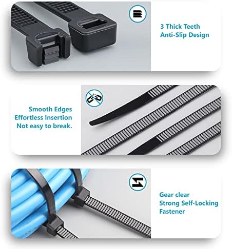 4 Diff Sizes: 4", 18 lb | 6", 25 lb | 8", 40 lb | 12", 45 lb. 400 Pack: 4", 100 Pack | 6", 100 Pack | 8", 100 Pack | 12", 100 Pack. Multi-purpose Use: Multiple sizes and tensile strength are suitable for various situations. Indoor & Outdoor: Perfect for home, office, garden, garage, organizing electrical wires, hanging lights, attaching fences, etc. Warranty: Customer will receive a 100% refund if any quality issue.