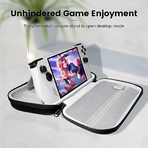 CUSTOM-DESIGNED CARRYING CASE FOR ASUS ROG ALLY-- Limited edition slim design. Fits your device with a silicone case. The coolest protection for your ASUS ROG Ally Handheld! (NOTE: ROG Ally console and other accessories not included) FULL PROTECTION -- Durable EVA hard shell and soft inner lining can protect your ROG Ally Handheld against any bumps or scratches during transport. The groove design provides enough space for the ROG Ally Handheld Joysticks, effectively protecting them from external crushing. PORTABILITY & COMFORT -- The lightweight design of the travel case and nylon handle make it convenient for carrying by hand or hanging in any location, whether at home or on the go, for comfortable portability. BUILD IN STAND- The inner cards slots board can be use as switch stand, you can enjoy the switch tabletop mode anywhere. Make going on vacation very happy, perfect fit for outdoor activities and enjoy your game with family or friends. WHAT YOU GET- A ASUS ROG Ally hard carrying bag and a cleaning cloth; Worry-free 12-month warranty, and friendly customer service. (ASUS ROG Ally and other accessories not included, for demonstration purposes only).