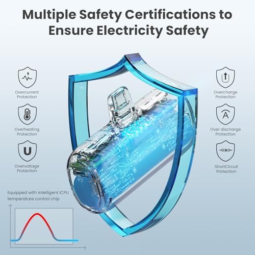 【2 Packs 5200mAh Portable Charger for iPhone】Single power bank is 5200mAh, best emergecy portable charging source for iPhone or AirPod, power up for your iPhone 13 from 20% to 70% in 30mins, which allows you enjoy the outside activities without worrying about your phone power off. You can use the type-C Cable(Package Included) to charge this mini power bank. 【Lightweight & Compact Power Bank】Ultra small and ultra lightweight, single unit dimensions is only 27*53*82mm (1.06''x2''x3.2''), single unit only weigh 0.19lb, easy to carry where you want to go and no need cables. And Built-in 4 LED indicators show the power left as 25%-50%-75%-100%. Package List: 5200mAh power bank x 2, USB C cable x 2, User manual x1, share with family and friend. 【Design for iPhone Series , No Need Cables, Plug & Play】Small power bank for iPhone, Portable charger compatible with iPhone 14/14 plus/14 Pro Max/13/13 Mini/13 Pro/12/12 Mini/12 Pro/11/XR/XS/X/SE/8/7/6 and Airpod. Plug-in and power on without extra cable for charging. This mini power bank is loved by young, which is the best choice for winter gift. 【Exclusive Pass-Through Technology Safety Protection】The battery pack supports bi-directional direct charging technology, which can charge your device at the same time as charging, and can also charge two devices at the same time. Our mini portable charger power bank is made of high-tech lithium battery, and ABS high-strength alloy fireproof material. Built-in intelligent protection systemto avoid over-discharge, over-charge, short-circuit, short-circuit or overload when heating, and automatical 【Pocket Battery Pack for Daily Use】Portable charger for iPhone is the best charging companion for travel and outdoor activities, pocket-sized body with large capacity allows you timely charging anytime and anywhere, include on plane. It also slides easily in your pocket, wallet and purse, allows you to easily use your phone with one hand. The portable pocket design is a great Gift for women and men at Christmas, Thanksgiving Day, Mother's Day, Valentine's Day, birthday.