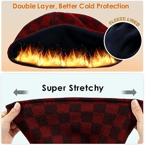 ULTIMATE COMFORT AND STYLE:The winter beanies made of durable knitted material on the outside and lined with soft thick fleece on the inside, keep your head and ears for maximum warmth and comfort, and the newly upgraded knitted construction provides good insulation, featuring a plaid design, is a trend-setting accessory for your casual wearing or formal attire CRAFTED HIGH QUALITY KNITWEAR: A unique 3D stereoscopic cut that provides a comfortable feel for our heads, the hexagonal design at the top of the beanie ensures that the fabric is tight and seamless, making it withstand the test of long time and harsh environments. New developed technology, precisely controlled by computer, to obtain the most beautiful and consistent sewing quality, ensuring that all beanie hats are excellent FLEXIBLE AND STYLISH:Another highlight of this beanie is its reversible design. You can wear it on either side, and one beanie hat gives you two stylish options. The plaid patterned side adds a stylish and modern feel to your look, while the solid color side provides a classic yet understated style MORE DYNAMICS FOR WINTER SPORTS: This fleece lined beanie are not only stylish and practical, but also suitable for all kinds of winter outdoor activities. The snug fit and excellent stretchy fabric allow for dynamic movement, and whether you're skiing, running, hiking, or just strolling through the park MATURE AND VERSATILE GIFT: This beanie is a practical and bright choice for birthdays, holidays or any special occasion. Don't let the cold weather dampen your spirit, embrace it with confidence and style. Upgrade your winter wardrobe with our men's and women's beanie hats and experience the ultimate combination of function and style #569,318 in Clothing, Shoes & Jewelry ( ) #1,370 in #1,531 in