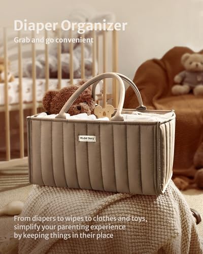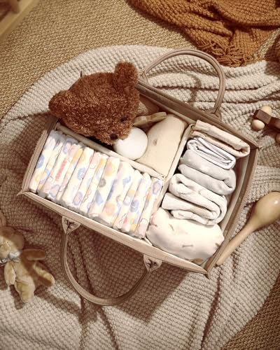 Orgnanize Your Diaper Essential - This diaper caddy organizer is extremely versatile with room for all your baby necessities in one place.Store your baby’s nappies, wipes, bibs, creams, toys, swaddles, spare clothes and more baby stuff. Cuts changing time down having everything right at hand, so you don't have to search for where the diaper and wipes were left. Diaper Caddy with Handles and Removable Dividers - The handles make it easy to carry from room to room or carry it around to anywhere all baby essentials are needed. Moreover, it is equipped with removable dividers, enabling you to freely adjust the internal layout as needed to meet the storage needs of different items and keep it neat and organized. Versatile Baby Caddy - Portable and practical nappy caddy basket fit for different stages of baby and this Organizer will be great to come in the nursery, bathroom, living room and car. With multiple compartments, you can easily store all of your breast pump and breast pump parts, also use it as a car organizer. Stylish Diaper Caddy Organizer -The specially added neutral mocha brown colour and trendy design adds great style for your changing table station or anywhere in your nursery or family room.It is one of the newborns registry must haves and will make your parenting life easier. A Unique Baby Shower Gift - The baby diaper basket is not only practical, also looks fashionable. You could fill it with mom and baby essentials to make it an extra special present for any new mom or mom-to-be. A perfect Baby Shower gift that would help her be carefree in managing the baby's duties.