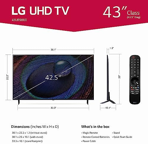 LG 43-Inch Class UR9000 Series Alexa Built-in 4K Smart TV (3840 x 2160),Bluetooth, Wi-Fi, USB, Ethernet, HDMI 60Hz Refresh Rate, AI-Powered 4K (Renewed)