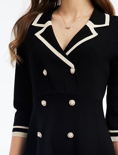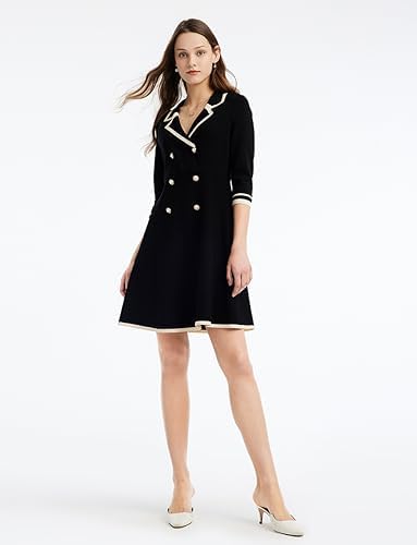 FUNCTIONAL - This women's dress is crafted from a skin-friendly and comfortable fabric. Very elastic, fits the multiple body shape and can accommodate a variety of figures. FEATURES - This is a black mini long sleeve sweater dress,teacher business casual work knit button-front a line 3/4 sleeve collared fitted double breasted dress with white lines. OCCASION - This GOELIA 2023 fall trendy dress is suitable for outdoors, office, ceremony, formal, casual, work, shopping, street, dating, daily wear in spring and fall. HIGHLIGHTS - The A-line silhouette and high-waisted design are versatile and flattering for all body types. The suit collar featuring color-blocking exudes a vintage trend, while the pearl buckles add a touch of elegance. GOELIA DESIGN - A female clothing brand offering superior quality with best price perfomance, founded in 1995. GOELIA has always been motivated by curiosity, working hard to incorporate elegant, gentle and romantic auras into daily fashion, for women who love to travel and enjoy life. Our refinements of pattern and crafts are incorporated in the early stage of design to ensure products are also comfortable to wear while looking pretty. #35,789 in Clothing, Shoes & Jewelry ( ) #392 in