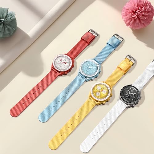 【Compatibility Models】Weclome to Wizvv Store! This Band Replacement Compatible with Omega x Swatch Moonswatch Speedmaster, and also fits any 20mm lug width watches. Whatever you look for an Omega Swatch Moonwatch Speedmaster strap for Mercury, Venus, Earth, Mars, Jupiter, Saturn, Uranus, Neptune, Pluto, Sun, and Moon in general, our selection has you covered. Please check your watch model before purchasing. (No Smartwatch included). 【Robust & Durability】The 20mm Omega watch bands are made of durable nylon material, more robust and light to wear. A wild adventure going on when you wear it. With a nice sheen to it, revealing luxurious from understatement look. It’s a real "a Huge Wristed wears a little" watch band. The loop won't too high, appropriately sized for two straps to fit through. Particularly suitable for Industrial work or a mount climbing trip. 【Adjustable and Integration】Fit for 6.2-8.2 inches wrists(160mm-210mm), the watch band replacement with steel buckle & stuck hole, you can adjust the length of the strap to fit your wrist possibly to the extend. Our moonswatch straps are easy to install and remove, package include strap * 1, pins * 2, tool * 1. 【Beautiful Gift】Multiple colors for choice! Choose the appropriate color of watch bands according to your dial, to create a classic/stylish/fresh/vibrant look at your will to suit for different occasion. Meanwhile, it's a perfect gift for your family, lover and friends during Thanksgiving Day/ Christmas/ Valentine's Day/ Mother's Day/ Father's Day. 【Excellent Shopping Experience】Wizvv provide a wonderful shopping experience! Any damage to the strap itself (including damage caused by personal installation) can be returned and exchanged free of charge. If you have any problems during using the smart watch bands, just contact us without hesitation and then we will offer a proper solution. #179,071 in Clothing, Shoes & Jewelry ( ) #287 in