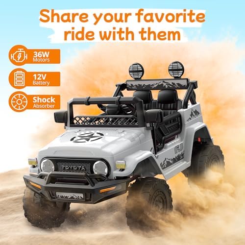 Powerwhale Kids car Electric car for Kids- Kids Jeep Remote Control Ride on car for Toddlers 12v Ride on Toys Children's White