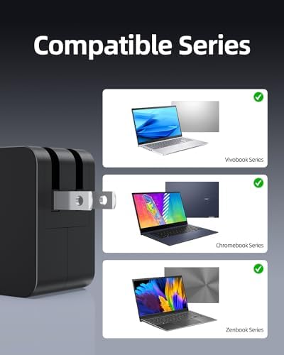 ?Top Safety Standard: This item has passed strict UL safety tests, meaning its components and quality meet the national gold standard for electricity product safety. ?Fit for Asus Vivobook 15 17 14 16 16X 17X 15X 14X 12 13 11 S13 S14 S15 S Pro Slate OLED Go Flip MAX, ZenBook 14 15 17 13 1 3 S13 S Flip Fold OLED Deluxe, Chromebook Detachable CM3 CM5 CM30 CX1 CX3 CX5 CX34 CX55 CX9 CM14 CM34 CR11 14 Plus Vibe Flip, ExpertBook B1 B2 B3 B5 B7 B9 P1 P2 L2 CX54 Flip OLED Charger. [It won't charge your device if it needs power over 65W]. ✉️Warranty - Our products come with a full refund or exchange guarantee within 30 days and an additional 24 months warranty. Power & Connector: 65W Max What You Get -1 X Power Adapter for Asus Vivobook 15 Charger Replacement. Please try all 4 switchable tips to find the right fit.