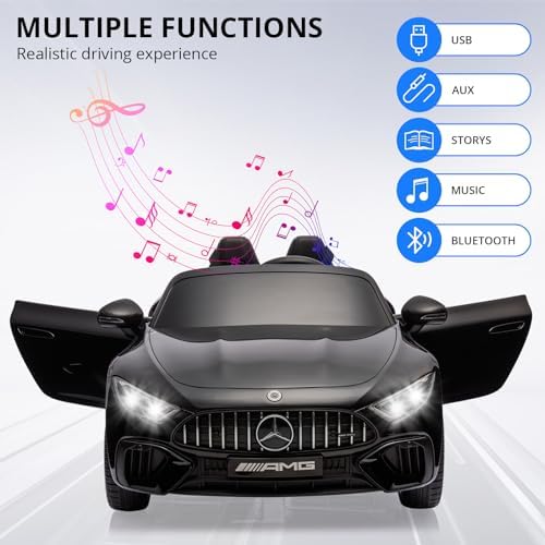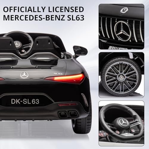 Hetoy Ride on Car for Kids 12V Licensed Mercedes Benz SL63 Electric Vehicles Battery Powered Sports Car with Remote Control, 2 Speeds, Sound System, LED Lights, MP3, Music, USB and Bluetooth, Black