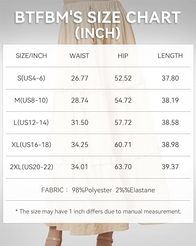 BTFBM Women's Long Summer Skirt 2024 Elegant High Waist Cocktail Party Wedding Guest Dress Flared A-Line Midi Skirts