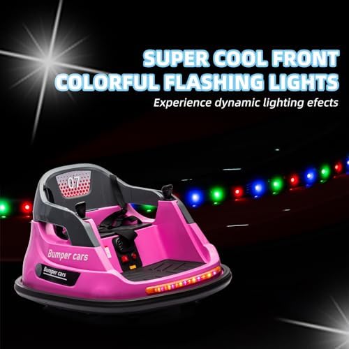 OKYBABY 12V Ride on Bumper Car for Kids, Baby Bumping Toy Gifts W/Remote Control, LED Lights, Bluetooth & 360 Degree Spin, Vehicle Body with Anti-Collision Padding Five-Point Safety Belt, Pink
