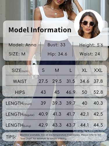 【Wide Leg & Flowy】 Work Pants made from 100% Polyester. They are light, breathable, elegantly draped, and exceptionally elastic for comfort and style, with a graceful Flow. 【Waist Design】These women's casual Wide-Leg Pants have a High-Waisted design. With unique front pleats and a soft elastic band at the back, they offer extreme comfort—a perfect blend of style and lounge vibes! 【Features】Single Button for a business touch; relaxed Wide-Leg cuffs for casual charm; two hidden deep side Pockets for added convenience. Effortlessly stylish. 【Occasion】Ideal for regular dress-up in the office or everyday casual wear for shopping and events. Pair the Palazzo Pants with shirt in Spring and Fall, tank top in Summer. 【Tips&Care】 Machine washable, Iron at low temperature if necessary, Please refer to our "Size Chart" for accurate fit before ordering. #24,382 in Clothing, Shoes & Jewelry ( ) #167 in