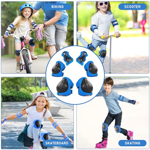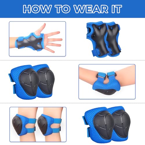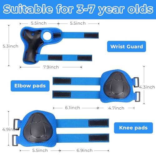 6 in 1 Kids Protective Gear Set:Protective Gear Sets includes 2 kids knee pads, 2 kids elbow pads, 2 kids wrist guards. Knee pads for kids, boys and girls aged 3-8 years old, weighting 33lb-88lb. Impact Resistance and Durability:The Knee Pads Set is made of an abrasion-resistant, shock-absorbing, durable PP shell and high-density foam pads, with a breathable fabric lining and mesh surface providing a breathable, comfortable wrapping. Adjustable Elastic Bands:Upgrade Adjustable Elastic Straps and Velcro Closures to fit at different ages children to cling to body better and moves freely at the same time. Suitable for Multiple Sports:Kids knee pads and elbow pads are perfect for scooters, e-bikes, skateboards, mountain bikes, BMX bikes, cycling, inline skating, rollerblading bikes and other outdoor sports. Kids knee pads set keep our kids away from injuries while enjoying the fun of sports. Best gift for children:Good choice for Children's Day, Christmas, Birthday, Holiday Gifts and other Holiday Gifts. Your 100% satisfaction is our motivation, if you have any questions about the knee pads, please contact us. #19,017 in Sports & Outdoors ( ) #32 in