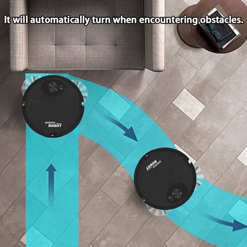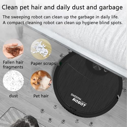 Mini Cleaning Robot Automatic Vacuum Cleaner, 3-in-1 Sweeping Robot Vacuum Cleaner, Light Vacuum Cleaner, Suitable for Pet Hair, Hard Floors, Carpets, Ultra-Thin Silent Floor Vacuum Cleaners (black)