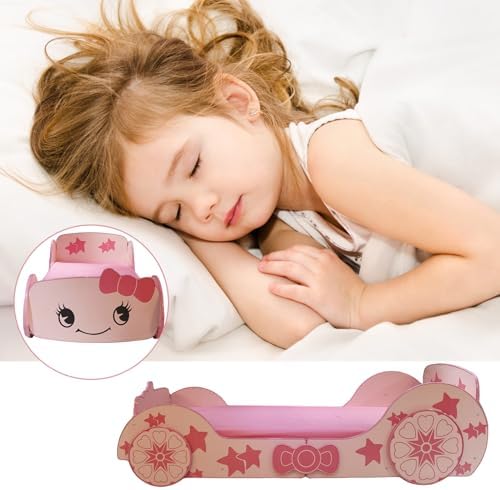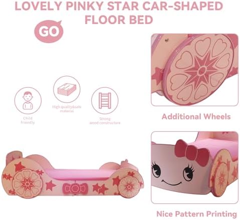 ?【Creative Children's Racing Bed】This bed with an appealing lovely pinky star car design and Wheels decoration will be a real eye-catcher in your bedroom. This unique twin bed creates a fun and lovely space that can be used not only as a cosy sleeping area but also as a play space. ⭐【Kid-Friendly Design】The Little Star Cartoon Car Bed is designed with rails on both sides to prevent your child from falling out of bed. Full coverage round frame to avoid child injury. Comfortable,functional,and aesthetically pleasing, this twin bed is designed to ensure the utmost comfort and maximum safety for you. ?【Solid and Safe】Made from premium P2 MDF, this bed is safe and odor-free, ensuring stability and durability. Sturdy slats provide the required support and can withstand daily wear and tear. ?【No Box Spring Needed】The kids bed frame with 13 wood slats support platform to extend the life of your mattress, suitable for all kinds of mattresses, spring, memory foam, latex, or hybrid mattress. ?【Easy Assembly】Easy-to-understand instructions are included for you to finish the assembly conveniently. All installation tools and accessories are in small bags. You don't need to prepare additional tools. If you have any questions about the product, please feel free to contact us. ?【PLEASE NOTE】This product is only a bed frame and does not include mattresses and sheets. Please be aware.